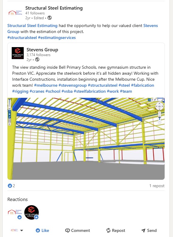 A Collection of project highlights shared by our clients, where Structural Steel Estimating provided estimating support during the tender stage.