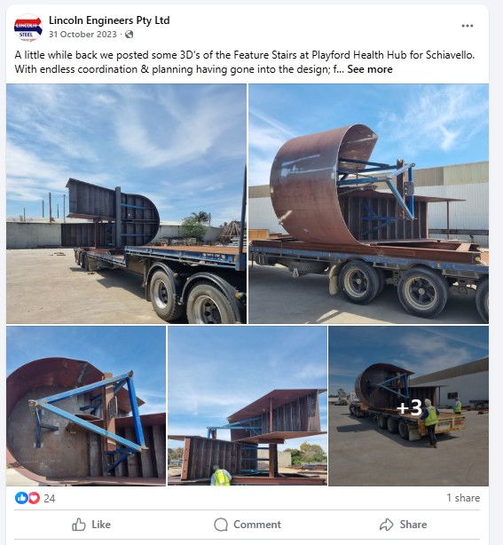 Tender-stage estimating support by Structural Steel Estimating – helping our valued client Lincoln Engineers win and successfully deliver Playford Health Hub project in South Australia.